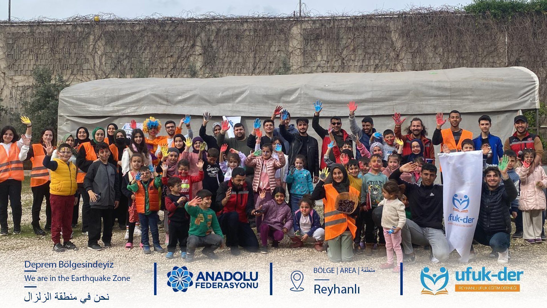 Reyhanlı’da faaliyet gösteren Ufuk-Der ve Gönüllülerimiz, Anadolu Federasyonu Koordinasyon Merkezinde depremzede çocuklara yönelik çeşitli oyunlar ve etkinlikler düzenlendi.